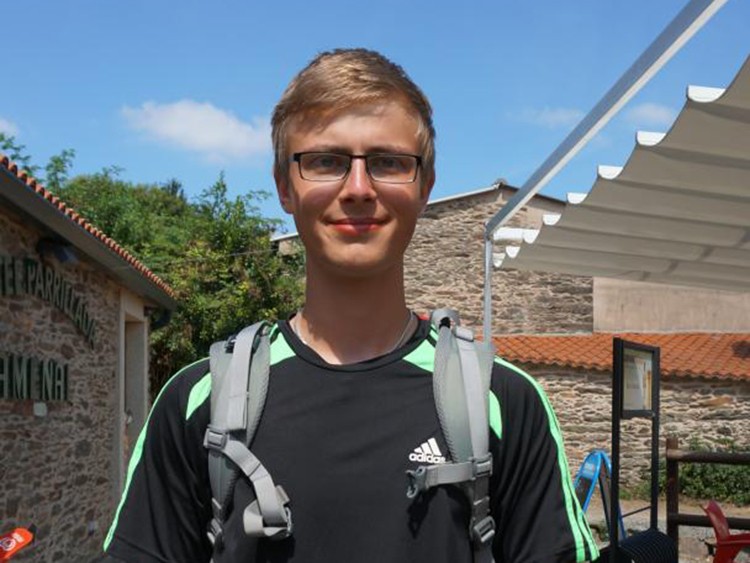 聖地まで歩いて4時間ほどの村アメナル。大学2年のドイツ人トビアス・シェーフェル(20)はカフェで、道中に体験した「強烈な瞬間」を振り返った。
