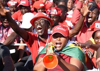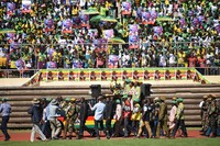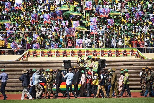 先月28日にジンバブエの首都ハラレであった与党の選挙集会は、国立競技場を借りきっての開催。参加者は午前9時ごろから到着し、数万人が集まりました。
