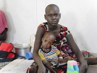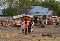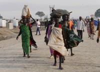地方に行くと、さらに事態は深刻です。南スーダン最大の国内避難民キャンプがある北部ベンティウでは、女性が日銭を稼ぐためにキャンプの外に出て、薪を拾い集めていました。