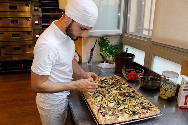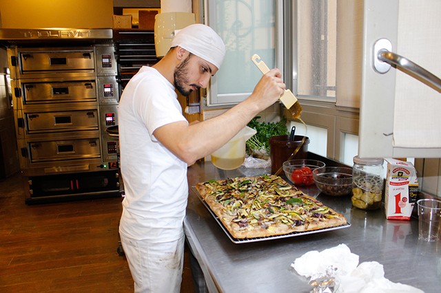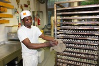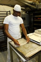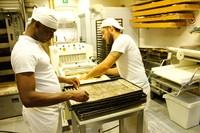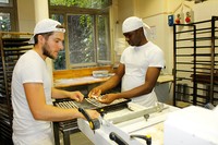 店舗の裏の工房に回ると、パン作りのスタッフが手際よく、小さくカットされたグリッシーニの生地を指でつまんでのばしていた。この店の特徴は、製造スタッフに移民が多いことだ。製菓部門も含め、23人の製造スタッフのうち、イタリアにやってきた移民は8人。出身国もトーゴ、アルバニア、アフガニスタンなど様々だ。