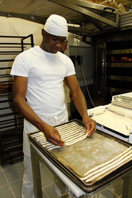 グリッシーニを焼いていたアチャ・アブドゥル・ラシッドさん(32)は、ガーナからリビアを経由し、地中海を渡って来た移民だ。たどり着いたスウェーデンではチラシ配りなどの仕事をしたが、生活は苦しかった。7年前に知人の紹介で、この店にやってきた。パン作りの仕事を覚えて、妻の待つガーナに帰るのが夢だ。「ガーナにもピーナツが入った、グリッシーニに近いパンがあるから、食べてくれると思う。この仕事のすべてが気に入っている」と話した。