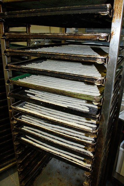 トリノのパン店「ペリーノ・ヴェスコ」では1日に25キロのグリッシーニをつくる。取材に訪れた日は、本数にすると1248本だった。