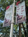 習近平政権の政治スローガン「中国の夢」。漢字とチベット語で書かれている=2018年8月11日、青海省海北チベット族自治州西海鎮、吉岡桂子撮影
