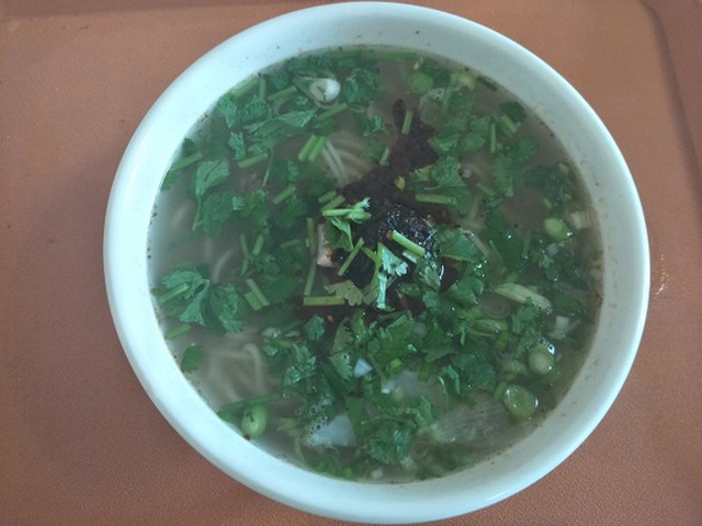 牛肉麺。手打ちの麺もスープもとてもおいしかった。ただ、牛肉麺を名乗るわりには、肉は特別に頼まなければのっていない。9元(約140円)=2018年8月11日、青海省海北チベット族自治州西海鎮、吉岡桂子撮影
