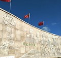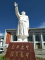 町の中心地にそびえ立つ毛沢東像=2018年8月11日、青海省海北チベット族自治州西海鎮、吉岡桂子撮影