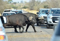 南アフリカ北東部にあるクルーガー国立公園。8月下旬、枯れ木が目立つ草原を車で回っていると、十数頭のゾウの群れに出くわしました。大きな鼻を器用に動かし、木の葉を食べて腹ごしらえをする様子は、まさにアフリカらしい光景です。