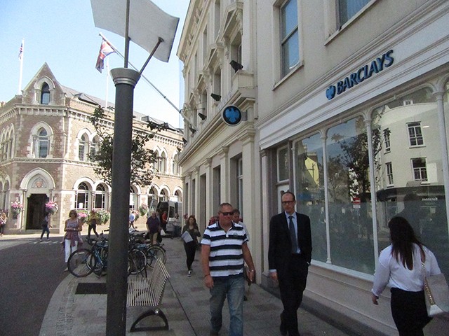 高級そうなクルーザーが連なる海岸沿いに整然とビルが並び、通勤時間になるとスーツ姿の人たちが次々と吸い込まれていく。歴史的に英国王室が有してきた領地である島は、強い自治権を持ち、標準の法人税率は0%(金融機関は10%)で金融取引にかかるコストも低い。淡路島の5分の1ほどの面積に29の銀行が拠点を構え、約1100億ポンド(約16兆円)の預金を抱える。人口10万人の島で仕事につく人の4人に1人が金融業界で働いている。中心部はまさに金融センターだ。