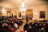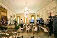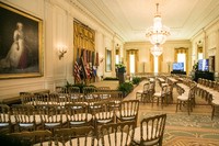 「イーストルーム」は、ホワイトハウスの中で一番大きな部屋で、文字通り、ホワイトハウスの東側に位置する。大きな3つのシャンデリアがきらめくこの豪華な部屋で、勲章授与式や記者会見、法案署名式など、数々の式典やイベントが行われてきた。