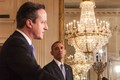 鏡に映るシャンデリアを取り込んだオバマ大統領の写真。手前はキャメロン英首相(当時)=2015年1月、ワシントン、ランハム裕子撮影