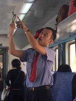 乗務員が身分証のチェックにやってきた。駅の敷地に入るとき、構内に入るとき、改札、乗車、そして入室後。合計5回も調べる。私のパスポートには記者ビザがたくさん貼り付けられている。職業はすぐに分かる。念入りにノートに書き込んでいる。そして、切符を渡して、引き換え証を受け取る。これが終わったら、同室の3人は布団をかぶって寝始めた。まだ午後7時半すぎである。あまりに早い。枕元のライトをつけて本を読もうかと思ったが、壊れていてつかない。仕方ない。私も休むことにした。