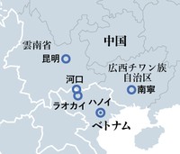 中国とベトナムをつなぐ鉄路は実は、もう一本ある。フランスがインドシナ半島を支配していた1910年、ベトナムのハイフォン―ハノイ―ラオカイ―雲南省河口―同昆明へとつなぐ路線(854キロ)を開業させた。1000ミリの線路だ。第二次世界大戦後、58年に復活したが、こちらも中越関係が悪化した78年に停止。関係修復後の96年から、再び国際列車を走らせた。