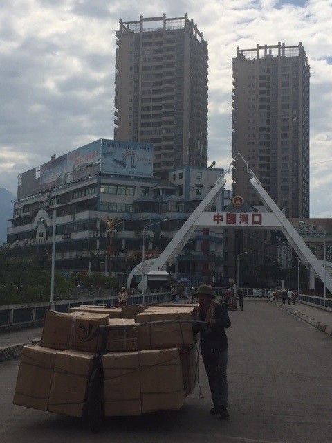 私はこの区間も、列車で旅したことがある。昨年6月のことだ。北京から2700キロ。世界最長をうたう高速鉄道でまず、昆明へ。和諧号で約11時間で着いた。そして、在来線に乗り換えて国境の町、河口北駅へ向かった。400㌔を6時間弱で走った。この区間には、中越の国境を越える旅客列車はない。橋を歩いて渡った。ベトナム側のラオカイの駅には、古びた中国製の列車が停まっていた。ハノイまでの約300キロを、9時間あまりかけてとことこ走る。