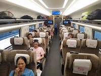 友人と会って香港への帰り、広州南駅から乗った列車も復興号だった。1、2等車とも売り切れ。仕方なくビジネス席を買った。1枚496香港ドル(約7200円)。一等車より、1700円ほど高い。先頭車両で、座席は飛行機のビジネスクラスのようにゆったりと後ろへ倒せる。
