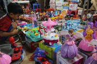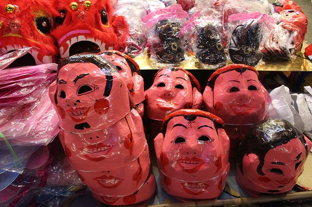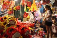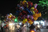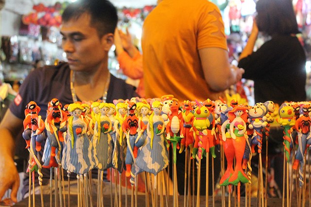 ベトナムでは、旧暦の8月15日の中秋節(十五夜)は子どものためのお祭りとされる。普段は縁起物や祭祀用品を売っているハノイ旧市街のハンマー(Hang Ma)通りでは、この日の前後は多くのおもちゃ屋さんが並んで夜までにぎわう。電灯をつけた軒先に店を広げて売られているのは、キャンキャン言ってまわる電池式の犬の人形や、魚が口を開けたり閉じたりする魚釣りゲームのような庶民的なおもちゃだ。かなり「にせもの」のにおいの強いスパイダーマン人形、たぶん商標的に問題のあるクレヨンしんちゃんやドラえもんのぬいぐるみを山積みにした店もある。