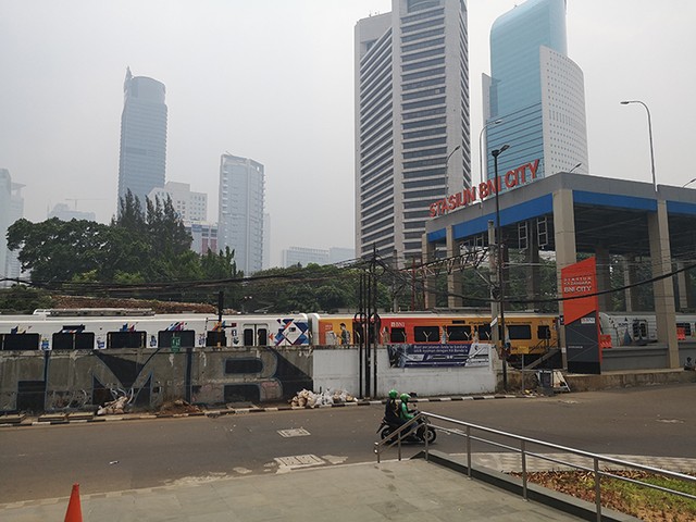 この鉄道は「ジャカルタ都市高速鉄道(MRT=Mass Rapid Train、大量高速輸送)南北線」と呼ばれ、中心部からビジネス街の目抜き通りを通って南下する。東南アジア諸国連合(ASEAN)の事務局の前あたりで地上に出て、高架を走る。全長15.7キロ。東京メトロ銀座線(浅草ー渋谷)より1キロほど長い距離だ。インドネシアでは来年4月に大統領選挙が控える。現政権の成果として、なんとしても開通させたいジョコ大統領の意気込みに押されるように、急ピッチで仕上げが進む。