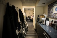 休憩室には5、6人座ればぎゅうぎゅうのテーブルと椅子のセットが、お菓子とドリンクの販売機の横にあるだけ。テレビのレポーターがここでヘアメイクをすることもある。どこもかしこも狭いため、「ごめん、通らせて!」、「おはよう!」「おー元気?」を繰り返しながら前に進まなければならない。ただ、このようなコミュニケーションは毎日顔を合わせる仲間にとって大切な要素だ。その意味でもこの休憩室は、戦場のようなバトルが繰り広げられるホワイトハウスの憩いの場と言える。たとえそれがトイレの真横だとしても。。。