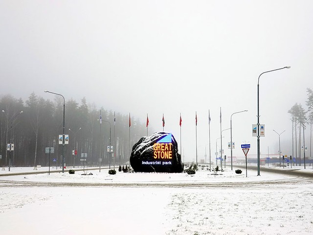 ベラルーシの首都ミンスクの国際空港から車で数分走ると、雪深い森の中に造成したばかりの更地が広がっていた。中国がベラルーシと共同開発する「グレートストーン工業団地」だ。巨大な展示場やビジネスセンターはすでに完成し、標識には「北京大街」「展示中心」などと中国語を併記。「一帯一路の夢を実現」とうたう大きな立て看板もあった。