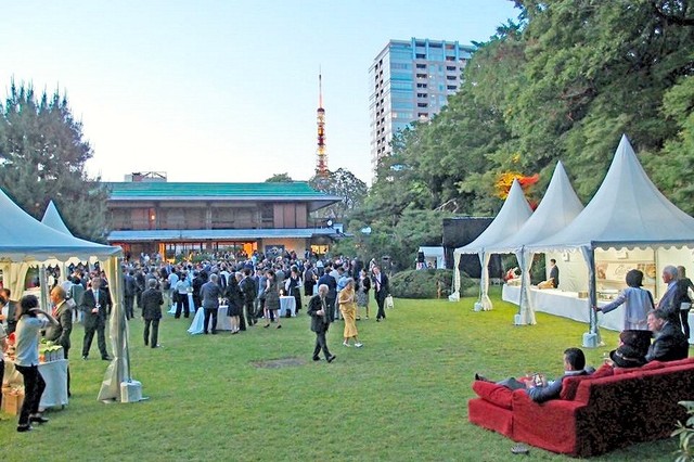 <在日イタリア大使館> 所在地は港区三田。伊予松山藩・松平家の中屋敷があった場所で、敷地内には日本庭園が広がる。赤穂浪士ゆかりの石碑も残され、この地で切腹した大石主税ら10人の浪士を顕彰することなどが日本語とイタリア語で刻まれている。