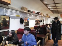 併設のカフェは、駅の店らしく列車の座席を再利用している。壁には、荷物棚まである。「ソウルには、頼まれても支店を出さないんだよ」。地元の名物を紹介するとき、尹さんはちょっと得意げだ。