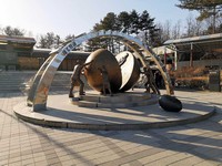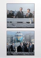 午後4時前。バスは都羅山駅に戻ってきた。「May This Railroad Unite Korean Families」(この鉄路が南北朝鮮の家族たちを結び合わせますように)。構内には、米国のブッシュ大統領がサインしたコンクリート製の枕木がガラスのケースに飾られている。金大中(キム・デジュン)大統領と2002年2月、当地をともに訪ねたときのものだ。両首脳の写真もある。