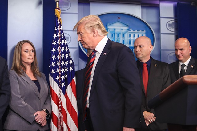 サンダース報道官と登場した8人は、国境警備の責任者だった。男性3人が、トランプ大統領を後押しするように壁の必要性を説いた。すぐ背後で話を聞くトランプ大統領は、役者の演技をチェックする芝居監督、はたまた「絶対ホームラン打ってこい」と選手に圧力をかける野球監督のように見えた。一人には、まるで「頑張れ。お前はできる」とでも言わんばかりに腕を叩き気合を入れた。一人一人が、トランプ大統領に対する感謝や忠誠を述べる。「トランプ大統領に心から感謝し、国境を守ろうとする努力を完全にサポートします」「物理的な壁を作ってくれるトランプ大統領の努力に心から感謝の気持ちでいっぱいです」。それを満足げに聞く「トランプ監督」。この流れは、他の式典や会議でもよく見られる恒例の「儀式」となっている。