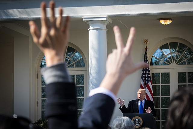 オフィスからホワイトハウスまではどんなに走っても10分かかる。息を切らして到着した会見室では記者団がまだ待機していた。間に合った……トランプ政権発足以来、突発的な会見や緊急発表があるが、時間通りに始まらないのはもはや日常茶飯事だ。