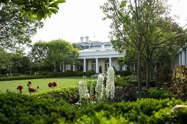 ローズガーデンは、大統領執務室とウエストウィングに沿ってある中庭の名称。春にはバラ、チューリップ、モクレンなどが満開になり、夏には青葉、秋には鮮やかな紅葉、冬には雪景色と、ホワイトハウスに季節ごとの演出を加えてくれる。いつも綺麗に整った青い芝生には、招待客やジャーナリスト用に椅子が並べられることもある。2013年には、オバマ大統領の専属フォトグラファーのピート・ソウザ氏がこのローズガーデンで結婚式をあげたことでも知られる。そよ風や太陽の日差しを肌で感じつつ、青空のもと行われる記者会見や式典は、イーストルームで行われるイベントよりも少しリラックスした雰囲気がある。