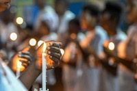 競技場に到着した人々はろうそくに火をつけ、悲劇を記憶することを誓い合った。暗闇に浮かぶ明かりは幻想的な雰囲気だったが、当時を思い出したのか、時折、悲鳴声も聞こえた。25年の歳月を経ても、家族を失った体験は人々の傷となっていた。
