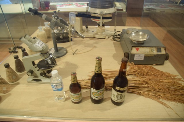 ビエンチャン市内の郊外にあるビアラオ工場を訪ねた。道路を挟んで工場と本社ビルがあり、道路の上に架かる歩道橋で繋がっている。近代的な本社ビルの一階にはビアラオ博物館がある。ビアラオの製造の歴史や製造機械、国際的ビールの品評会で高評価を得たことを示す盾の数々。ビアラオの旨さが国際的に評価されていることを証明しているようだ。ビアラオの原料なども展示され、有料だがビアラオが飲めるカウンターとテーブルも。ビアラオのTシャツやグラス等も販売されている。
