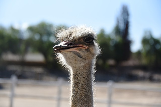 オーツホーンのダチョウ農園にいたダチョウ =3月30日、石原孝撮影