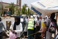 現場では、太鼓をたたいたり、国旗を顔にペイントしたりした多くの若者たちが集まっていた。最高気温は42度。強烈な日差しを避けようとテントや給水所も設置され、露天商も繰り出していた。気温が少しだけ下がる夕暮れ時になると、仕事を終えた人たちも加わり、数万人でごった返した。時折、デモ隊と治安部隊との衝突で負傷者は出ていたものの、幼い子どもを連れて来る人もいるなど、平和的な抗議デモが続いているように見えた。