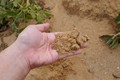 砂漠地帯のジャガイモ農場の土。砂漠の土だった=エジプト・イスマイリア県