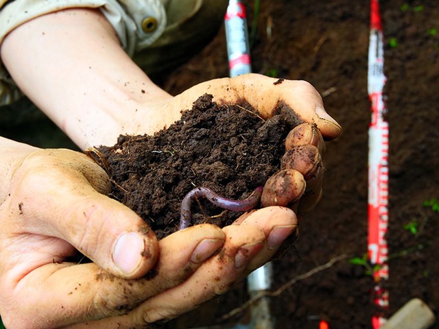 ジャワ島の土にいたミミズ。土の豊かさに貢献している