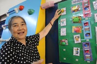 担任のキム・ガー先生(62)がベトナム語で話しながら、南国の果物の絵が描かれたおもちゃを長男に見せる。果物も文字もベトナムのものだが、長男は絵を見つめて、きちんとコミュニケーションをとった。