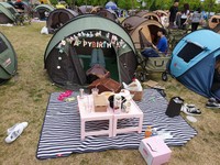 周りのテントを見やると、碁やチェスなどのゲームをしていたり、おいしいものを食べながらおしゃべりに興じたり、みんな「小確幸」を満喫している。