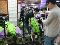 スーパーで見かけるものとはちょっと違うが、カートが列をなして漢江に向かっている。カートにぎっしり詰まっているのはキャンプ用品のようだ。私たちも、知らず知らずにカートがやってくる方向に足を向けていた。すると、キャンプ用品のレンタルのお店が現れた。カップルや家族などが思い思いにキャンプ用品を選び、カートに載せるのに忙しそう。でも、その表情はとても明るい。
