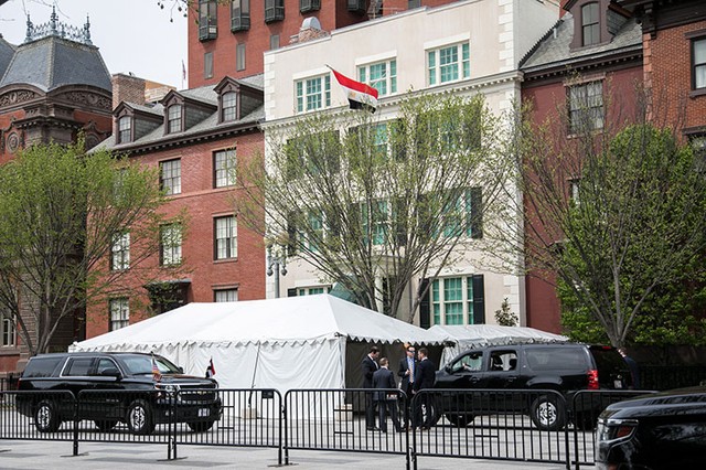 外国の首脳をホワイトハウスに招く際、米大統領が「お出迎え」と「お見送り」をする慣例がある。首脳が夫婦で到着する場合は、大統領はファーストレディとともに登場し、見送りも二人で行う。大抵の場合、招かれた各国首脳は、ブレアハウスという米政府のゲストハウスに泊まり、そこからホワイトハウスへ向かう。ただ、ブレアハウスはホワイトハウス北口のすぐ向かいにあり、歩いてもほんの数分。この短距離を車で移動し、大統領が迎えるという儀式は、セキュリティー上の理由だけでなく、お披露目のためでもある。そのため、相手国との関係をホワイトハウスが(またはトランプ大統領自身が)どう見せたいかによって迎え方や歓迎の場所が異なる。