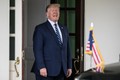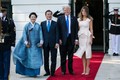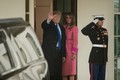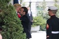 コロンビアのドュケ大統領夫妻を見送るトランプ大統領とメラニア夫人。この日の歓迎はサウスポーティコで行われ、見送りはウエストウィングで行われた=ワシントン、ランハム裕子撮影