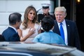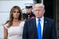 ホワイトハウスで韓国の文大統領夫妻の到着を待つトランプ大統領とメラニア夫人。到着を待つ数分間、この日二人は、ほとんど口をきかず、険しい表情で立っていた=ワシントン、ランハム裕子撮影、2017年6月28日