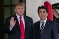 安倍首相による、トランプ政権発足以来3度目のホワイトハウス訪問。ウエストウィングに到着し挨拶を交わした後、ともにカメラにポーズする安倍晋三首相とトランプ大統領=ワシントン、ランハム裕子撮影、2019年4月26日