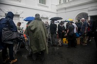 この日の予報は雷雨。レインコートや雨具をまとった多くの記者団がホワイトハウスに詰めかけたものの、一体どこで会見が行われるのか発表がないまま。中では「ソーシャルメディア会議」がまだ続いていた。午後5時過ぎ、屋内だろうという予想に反し開かれたのはローズガーデン(ホワイトハウスにある中庭)への扉。トランプ大統領のツイート予告通りだった。土砂降りの中の撮影になるかもしれないと不安にかられた瞬間、追い打ちをかけるかのように頬に雨つぶが落ち始める。