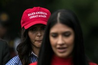 なだれ込むように中庭に入り、急いで撮影準備を始める。すると目に飛び込んだのは「MAGA(マガ)」(「米国を再び偉大に」という意味のMake America Great Againの頭文字)の赤い帽子をかぶった人々だった。それは毎度毎度トランプ集会で目にする光景。でもなぜ、トランプ支持者がホワイトハウスで記者会見に出席するのだろう……!?