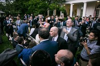 ローズガーデンは、トランプ大統領が「フェイクニュース」や「国民の敵」と呼ぶホワイトハウス記者団と、自分たちが真のジャーナリストだと主張するトランプ支持者が隣同士に共存する空間となった。この状況を考えるといつ何が起きてもおかしくはないだろう。