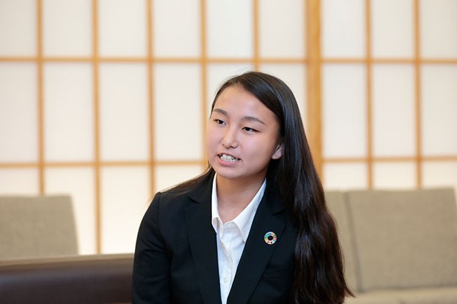 SDGs達成に向けて、自分たちが果たすべき役割とは─。今年7月に国連本部で開催されたハイレベル政治フォーラムにも参加した加戸菜々恵さん(ニューヨーク州立大学ビンガムトン校4年)と大貫萌子さん(慶應義塾大学2年)は、若い世代が声を上げることの重要性と同時に、その声を意思決定の場に届けることの難しさもあらためて感じたという。「皆さんは生まれた時からインターネットがある、いわばデジタル・ネイティブ世代でしょう。海外の人と接したり連帯したりすることに、心理的な抵抗も技術的な壁もないはず。そういう若い世代が媒介となって影響力を及ぼすことは、今後様々な局面で増えると思います。その際、少なくとも英語は不自由なく使いこなせること、さらにできればもう1カ国語をきちっと身につけてほしいと思います。簡単なことじゃないけどね(笑)」と河野大臣。