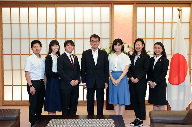 日本政府におけるSDGs推進の代表的役割を果たしている外務省を訪ね、河野太郎外務大臣との対話に臨んだのは6人の大学生たち。日頃のSDGsの研究や活動を通して感じていることや疑問を大臣にぶつけ、率直な意見を交わした。