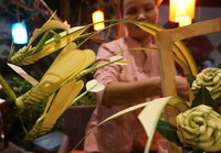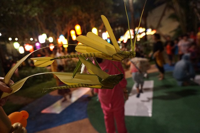 ベトナムには「子どもの日」は別にある。1925年にジュネーブの会議で決まったという国際子どもの日(6月1日)がそれにあたる。でも、中秋節も子どもが楽しむための日、とみなされているようだ。ポコの通うインターナショナルスクールではこの時期になると、生徒が子ども用のアオザイを着て学校に行き、歌や踊りのショーを見て楽しむ。私たちの住むサービスアパートでも、毎年中秋節のお祭りが恒例イベントになっている。小さな庭に果物と飾りが用意され、たくさんのごちそうが住人の家族に振る舞われる。子どものために獅子舞やマジックが披露され、風船でつくった剣や動物、お菓子もたくさんもらえるので、みんな楽しみにしている。