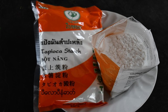 バンコク最大のクロントイ市場では、キャッサバの根茎が1キロ120バーツ(約336円)で売られていた。デンプンは1袋400グラム、20バーツ(約56円)だった。