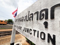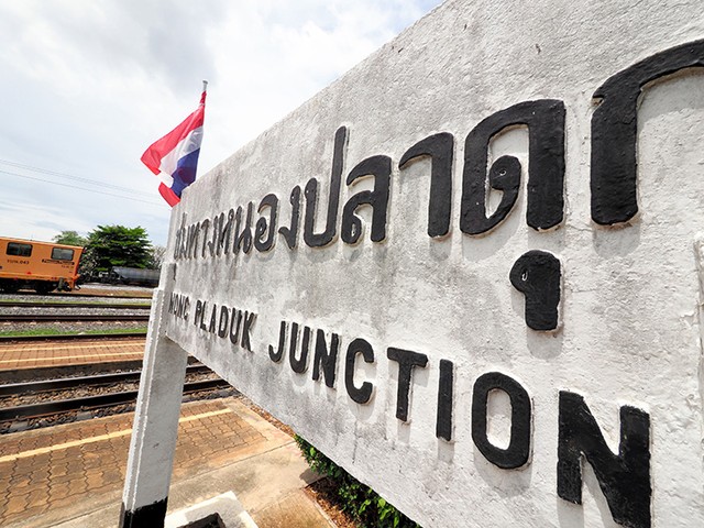 AS社によると、DD51を整備している車両基地のあたりは戦中、日本軍の倉庫があった場所だったそうだ。この駅は第2次世界大戦中、日本軍がタイ―ビルマ(現ミャンマー)間に敷いた泰緬鉄道(約400キロ)の泰側の起点である。日本軍が連合軍の補給路を遮断しようとしかけてインドに攻め込んだ「インパール作戦」で、日本軍の補給路を確保するための鉄路として造られた。日本語をまじえた石碑がホームにあった。「着工1942年9月16日、ノンプラドク駅から建設が開始された」。西太平洋ソロモン諸島のガダルカナル島の戦いが始まった直後。連合軍が本格的な反攻に転じたころである。