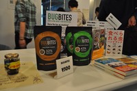 会場内でまず目をひくのは、「コオロギチョコレート」「タガメサイダー」「コオロギパスタ揚げ」をはじめとする様々な虫の名前がついたスナックや飲料などの販売コーナーだ。飲食スペースでは、「ミールワームペペロンチーノ」やスズメバチの成虫をあしらった「蜂蜜レモネード」などのメニューも用意されている。