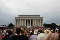 最後に米海軍のブルーエンジェルス6機がリンカーン記念堂から打ち上げ花火のように現れ、猛スピードでワシントン記念塔へ向かって消えていき、式典は終了。